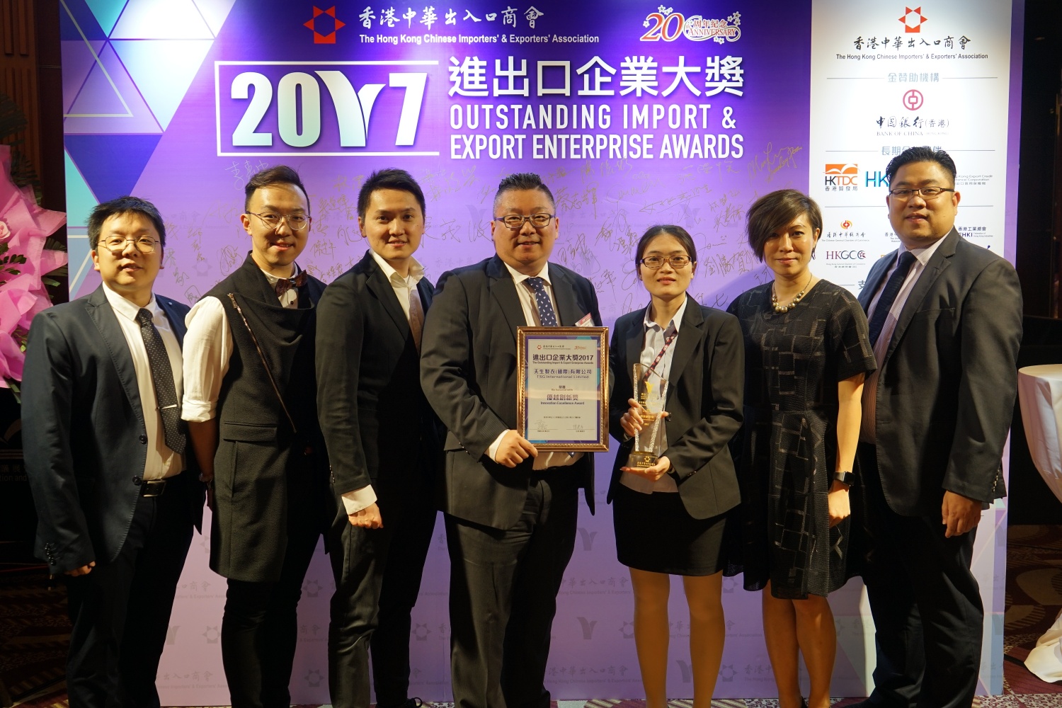 Tien Sung Group received the "Outstanding Import & Export Enterprise Awards - Innovation Excellence Award" organized by The Hong Kong Chinese Importers' & Exporters' Association. We would continue to offer professional advices and innovative concepts to customers. Our ultimate goal is to be an "Apparel Technology Service Provider".